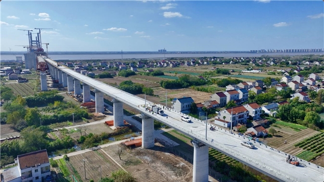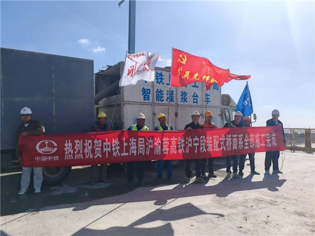 11月10日,在新建上海至南京至合肥高速铁路(简称沪宁合高铁)启东特大桥施工现场,最后一块预制构件灌浆完成,标志着由中铁上海工程局承建的沪宁合高铁沪宁段Ⅵ标装配式桥面系施工完成,这也是沪宁段完成的首段桥面系预制构件安装,项目建设取得阶段性进展。