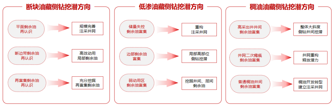 充分发挥侧钻井成本低的优势,根据各油藏类型的剩余油分布特点,明确潜力方向,断块油藏立足“块块有网”,低渗油藏立足“注采完善”,稠油油藏立足“井网重构”,优先应用侧钻开展"滚动勘探建产""稀油井网完善""稠油开发转型"工作,高效盘活老井存量,创效提升开发效益。