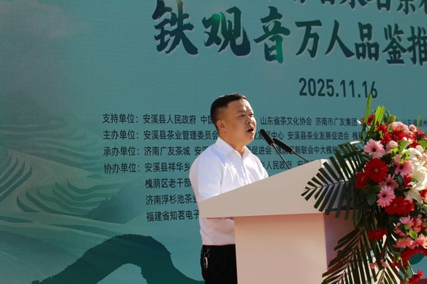 2025年11月16日,山东省济南市广友茶城茶香四溢、宾朋满座,“2025山东济南名泉名茶(泰山杯)秋季安溪铁观音万人品鉴推介会”在此隆重举行。本次活动由安溪县茶业管理委员会、安溪县茶业发展中心、安溪县茶业发展促进会等单位联合主办,旨在弘扬中国传统茶文化,提升安溪铁观音品牌影响力,推动闽鲁两地茶产业深度合作。