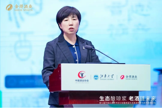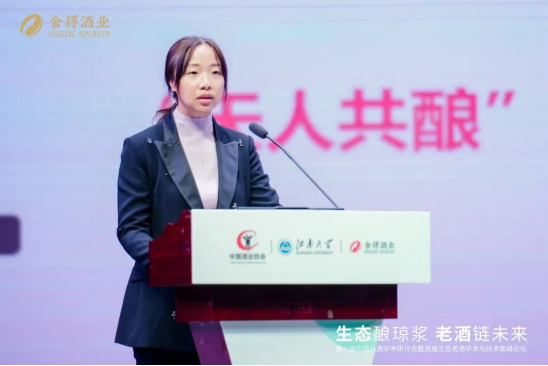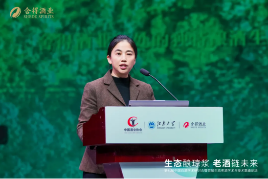 会上,舍得酒业技术研究院执行院长邹永芳系统性阐述了舍得生态老酒形成的逻辑与科技赋能的作用。她表示,舍得酒业将进一步解析自然生态与酿酒微生态的关联机制,推动白酒生产从传统的经验控制向科学精准控制转变。