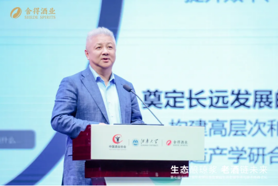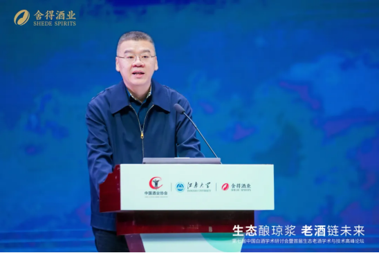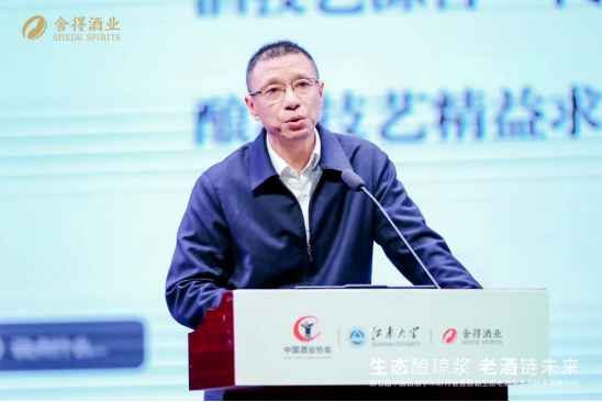 会上,舍得酒业董事长蒲吉洲作了《生态酿琼浆 老酒链未来》主题分享。他表示,“生态”与“老酒”是行业实现可持续高质量发展不容忽视的两大核心价值支撑:生态,是白酒品质的底色;老酒,是白酒价值的升维。舍得酒业愿携手各位同仁,继续拓宽产学研用平台,以科创推动行业实现全面绿色转型,让白酒的生态力量助力美丽中国建设。