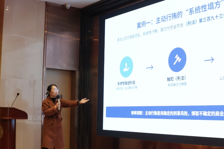 成都市成华区人大代表、成都市成华区人大司法与监察委委员李雪芹从实务角度,系统解读了企业与个人行贿的边界认定问题。“模糊的边界认知是廉洁风险的重要诱因。”她围绕商业贿赂、利益输送等常见情形,结合最新法律法规,明确了正常商业往来与行贿犯罪的界限,详细讲解了“雅贿”“隐性行贿”等新型行为的法律认定标准。她呼吁企业建立内部廉洁合规体系,引导从业人员树立正确法律认知,从源头防范廉洁风险。