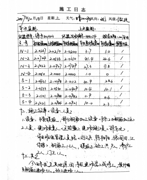 “每天雷打不动写日志,是他2015年刚毕业入职时养成的习惯。”如今已是项目副经理的王树盛,翻着2017年的日志本,指尖划过密密麻麻的字迹。当年刚从高校毕业走进工地,师傅就叮嘱他“车站是地铁的‘心脏’,每一处钢筋、每一方混凝土都关乎安全,必须记清楚”,这句话成了他的信条。从基坑边坡坡度、降水井水位变化,到钢筋保护层厚度、模板垂直度误差,从当天的混凝土坍落度检测值到班组的钢筋绑扎进度,甚至是脚手架立杆间距的细微偏差,他都一一记录在案,末尾还附上“明日需重点核查底板钢筋焊接质量”的提醒。这一写,就是五年。1800多篇日志里,没有一篇敷衍的“正常”,每一页都写满了“精细”。比如2016年的一篇日志里,他详细标注“下午3点突降暴雨,地铁车站基坑积水深达20cm,立即组织沙袋围挡,调配3台抽水机作业,暂停钢筋绑扎,调整底板混凝土浇筑计划,避免钢筋锈蚀影响结构强度”。正是这份极致细致,让他的日志获评“局施工日志一等奖”,成为了全公司的“范本”。