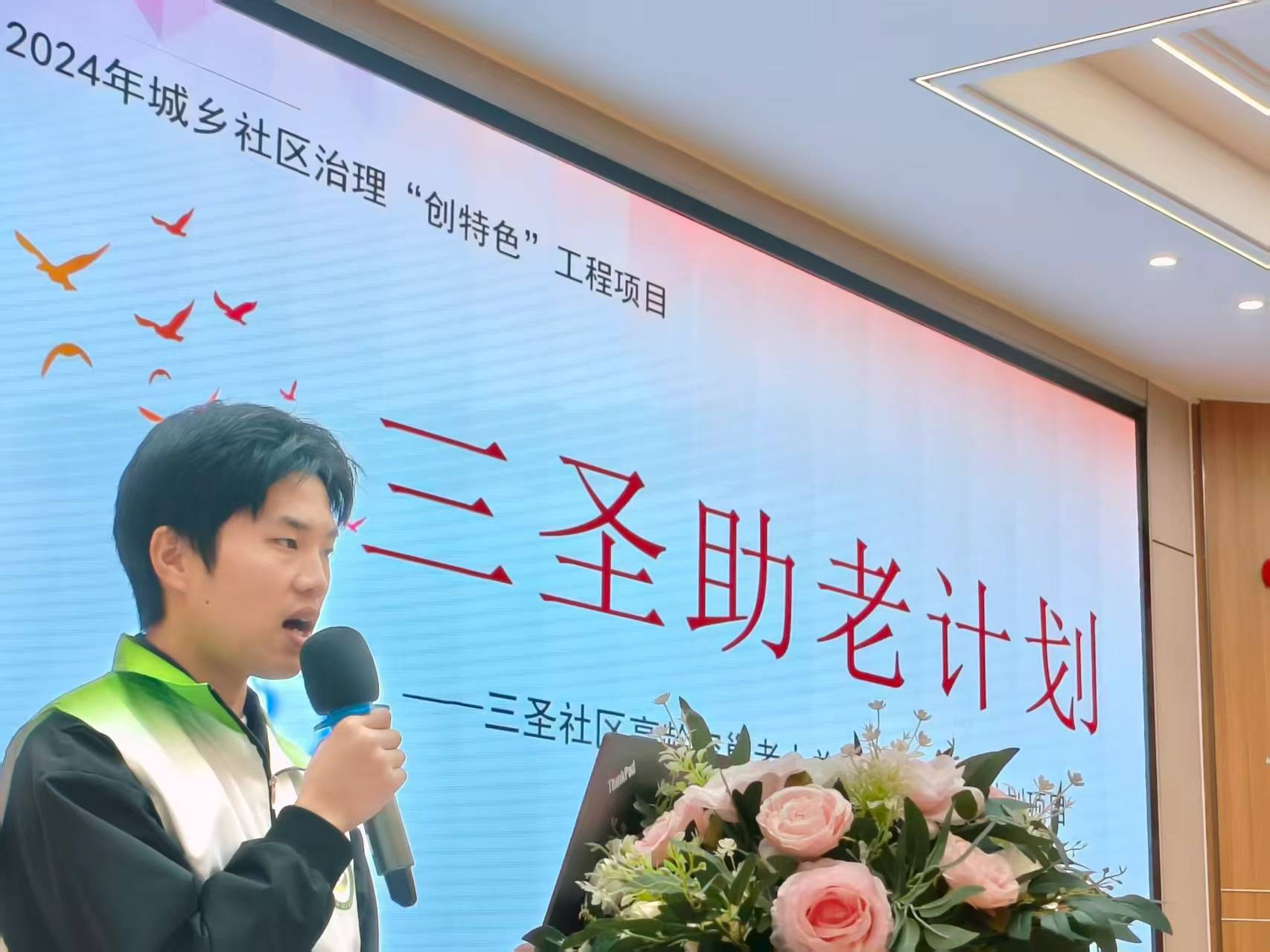 在严谨而活泼的评审流程中,五支参赛团队依次登台,全面展示覆盖为老服务、儿童关爱、邻里融合与生态环保等领域的项目方案,共同描绘“禾美三圣”的美好愿景。