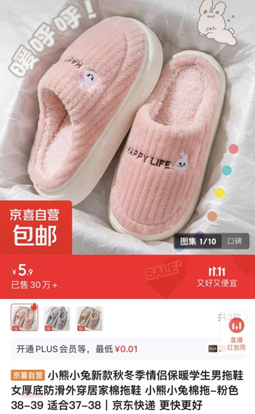 来自浙江义乌产业带的小熊小兔棉拖成为今年京东11.11期间的爆款单品。自10月以来,累计销售50万双,成功刷新平台棉拖单品销量纪录。该产品凭借高颜值设计、舒适保暖内里及男女同款的定位,赢得了广大消费者的喜爱。