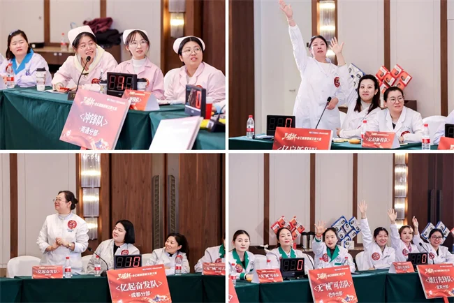 个人竞技环节中,他们锋芒毕露,抢答题分秒必争,风险题险象环生!答对晋级、答错淘汰的残酷规则,让空气都仿佛凝固。每一次正确的抉择都为团队增添砝码,每一次失误都令人扼腕叹息。慢病产品操作情景模拟环节中,极为考验参赛选手们的专业,选手们两人一组,面对真实案例,凭借扎实的专业功底和娴熟的操作技巧,为“患者”提供最优解决方案。评委的精准点评,更是让所有人受益匪浅。