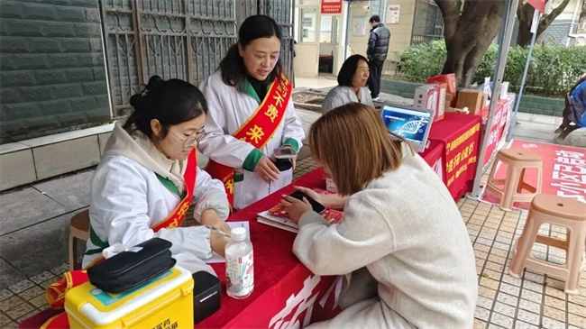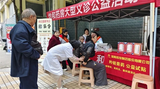 “叔叔,您肩膀痛,我扶您先坐下,为您试贴我们的膏药,缓解您的疼痛。”工作人员细心地搀扶着前来检测的老人家。健康顾问面带微笑,耐心地为居民测量血压、检测血糖,试贴膏药并结合冬季养生特点给出专业建议。