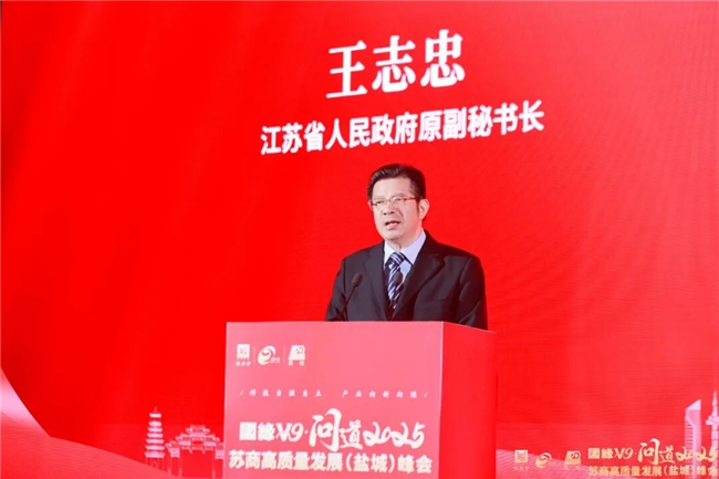 江苏省人民政府原副秘书长王志忠在致辞中分享了三点思考:第一,回顾“十四五”:江苏以高质量发展塑造成色,筑牢江苏现代化建设的坚实根基;第二,问道盐城:于绿色转型中开拓高质量发展新路,打造新质生产力的区域样本;第三,奋进“十五五”:以高质量发展谱写新篇,激发苏商勇立潮头的时代担当。新征程充满机遇也面临挑战,广大苏商是推动高质量发展的主力军,为此他提出三点期待:一是勇当科技自立自强的排头兵;二是争做绿色低碳发展的引领者;三是成为现代化产业体系的建设者。