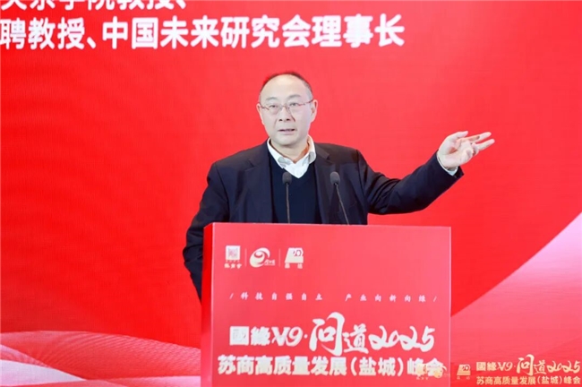 中国人民大学国际关系学院教授、教育部长江学者特聘教授、中国未来研究会理事长金灿荣应邀出席峰会并作重磅演讲。200余位省内外政产学研各界精英齐聚盐城东台,围绕“科技自强自立,产业向新向绿”主题,共同探讨如何在百年变局中把握新机遇、发展新质生产力,为苏商未来指路,为江苏发展聚势,为实业振兴赋能。