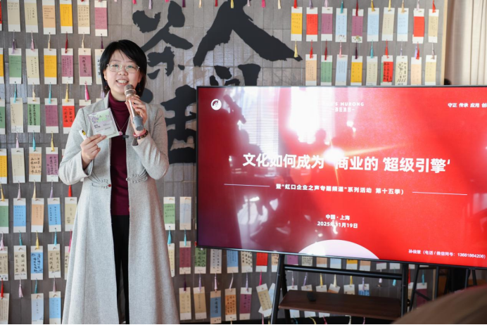上海孙佳沐容实业集团有限公司创始人、非遗澡豆第四代传承人孙佳慧,展现了如何将传统技艺融入现代美妆产业,实现老非遗的新生;上海秀美模型有限公司总经理王艳,分享了文化IP与实体模型结合带来的品牌增值;上海模指文化科技发展有限公司联合创始人张颖韵、书元(上海)文化传播有限公司总经理朱静蔚,分别从文化科技融合与传统文化传播角度,呈现了文化驱动的多元商业模式。 这些案例生动表明,文化已不再是商业的附加元素,而是驱动产品创新、提升品牌价值、开拓市场的核心引擎。 圆桌共识:文化是未来商业的核心竞争力 在圆桌沙龙与互动交流环节,由中企视讯总编辑乌兰琪琪格主持,与会代表展开了热烈讨论。大家一致认为,在消费升级与产业转型的背景下,文化的商业价值正被空前释放。无论是老字号的焕新,还是新品牌的崛起,对文化内涵的深度挖掘与创造性转化,已成为构建企业核心竞争力的关键。 虹口区工商联专职副主席韩晓峰在交流中表示,区工商联将继续发挥桥梁纽带作用,积极搭建此类高质量交流平台,助力企业把握“文化+”融合机遇,将虹口的文化资源优势转化为企业和区域经济的发展胜势。 本次沙龙的成功举办,不仅为虹口企业提供了思想碰撞与合作的平台,更清晰地勾勒出文化与商业深度融合的虹口路径。未来,虹口企业将继续依托本土丰厚的文化禀赋,共同驱动商业创新的“超级引擎”,为区域经济高质量发展注入源源不断的文化动能。