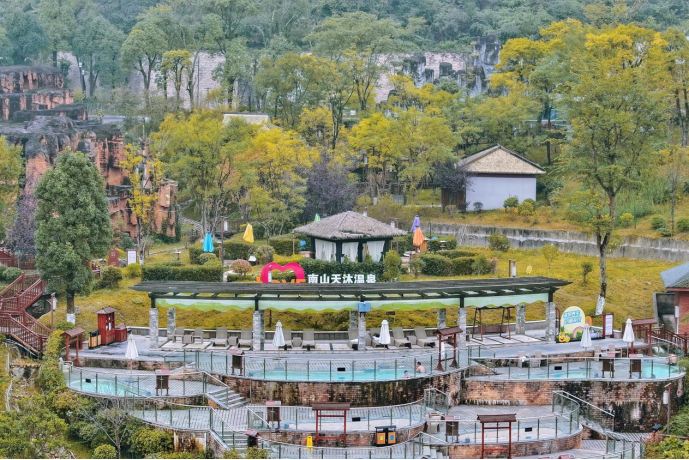 作为世界三大氡泉、中国八大名泉之一,南山天沐温泉的泉水源自地下2500米深处,富含多种有益矿物质,是国内外罕见的优质天然医疗与饮用矿泉。目前,南山天沐温泉已获评贵州省金汤级温泉度假地、贵州省森林及温泉康养示范基地、贵阳市职工劳模疗休养基地等多项荣誉,并与贵州医科大学大健康学院、息烽县中医院等机构深度合作。同时,作为贵阳市智能健康医药康旅产业技术中心的核心共建单位,南山天沐温泉还融合了瑶浴、苗药等国家级非物质文化遗产,将传统养疗智慧融入现代康养生活。