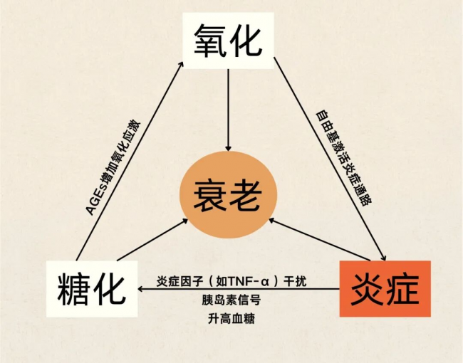 衰老是不可逆转的自然规律,但在快节奏的现代生活中,“早衰困境”正成为普遍现象。有数据显示,全球超六成35岁以上人群存在“生理年龄加速老化”问题,而现代医学研究发现:氧化应激、糖化反应与慢性炎症,正是这场加速人体衰老三大“幕后黑手”。更危险的是,氧化、糖化、炎症三者相互促进、环环相扣,最终导致衰老进程加速失控。