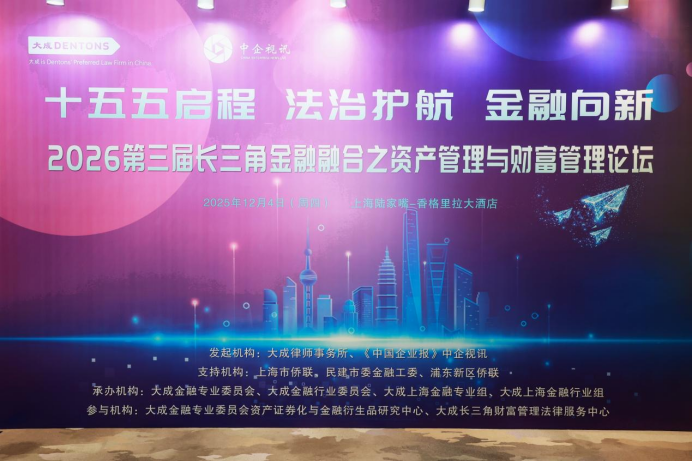 2025年12月4日,由大成律师事务所与中企视讯共同发起的“‘十五五’启程,法治护航,金融向新——2026第三届长三角金融融合之资产管理与财富管理论坛”在上海举办。