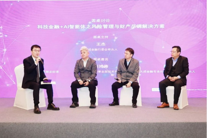 第一场圆桌讨论的主题为“科技金融+AI智能体之风险管理与财产尽调解决方案”,由大成金融行委会牵头人王杰主持。参与讨论的嘉宾有合合信息AI智能事业部总经理李明,吉贝克风险事业部技术专家肖鸿涛,大成金融专业委行业委联合牵头人、大成上海金融专业负责人曲峰。讨论中,嘉宾们介绍了AI技术在金融风险管理与财产尽调领域的核心应用与实践成果,同时也分享了AI在流动性预测、市场情绪预判、数据治理、智能报表生成等具体场景的落地案例,展现了技术在提升业务效率与决策准确度上的显著价值。嘉宾们一致认为,AI技术与金融、法律服务的融合是行业发展关键方向。AI应用需深度贴合实际业务场景,聚焦客户痛点,通过技术与服务的跨维度协同,解决信息不对称问题;需坚守合规底线与数据隐私保护要求,应对法律滞后于技术发展的合规挑战;要以风险管理与尽职调查为核心结合点,推动技术能力与法律服务、金融业务深度融合,形成全方位、高效能的综合解决方案,为“十五五”期间金融行业高质量发展提供有力支撑。