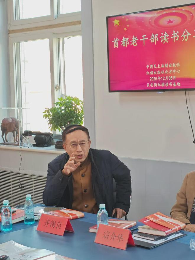 2025年12月5日上午,由中国民主法制出版社社科分社和红旗出版社北方中心长安街红旗读书基地联合主办的首都老干部读书分享会在京举行。红旗出版社北方中心主任项洪斌,原文化部直属机关党委组织部部长张民,中宣部文艺局原副局长成志伟,中国外文局翻译院原院长王继雨,原文化部少儿司文艺处处长宗介华,清华大学美术学院教授、北京文德堂书画院秘书长田在敏,中央纪委纪检监察研究所原副所长、国务院台办《两岸关系》杂志社社长兼总编辑姬广勤,中国科学院生物工程专家、高级工程师石国华,中国行为法学会培训中心专家智库委员兼客座教授李笑天,《中华工商时报》资深记者何翠云,《人民日报》《经济日报》原主任编辑张春生,以及本书作者、《辽宁工人报》原副总编辑康锦达,作品主人公于海洋的朋友、企业家齐锡良,中国民主法制出版社社科分社编辑团队出席了本次活动。本次分享会聚焦《雪落长河静无声》一书,与会嘉宾围绕作品的思想内涵、时代价值与现实意义展开了深入研讨与交流。活动由中国农业记者协会原秘书长、《百年强国梦》宣传平台总编辑张铁林主持。
