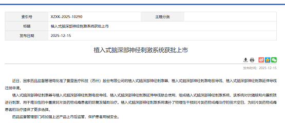 近日,中国国家药品监督管理局正式签发景昱医疗侵入式脑机接口治疗药物成瘾的三类产品注册证。