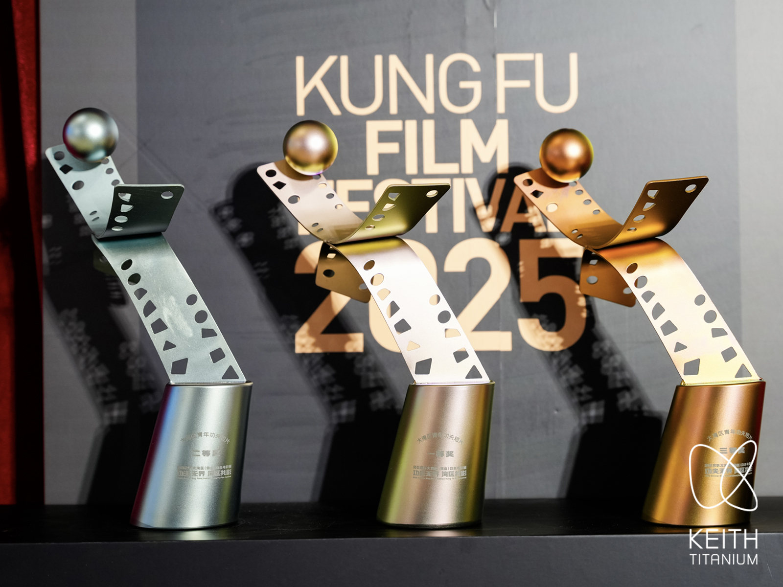 在本届电影展上,由佛山本土企业铠斯钛科技有限公司旗下高端消费品牌“KEITH铠斯”倾力打造的荣誉奖杯,以其突破性的材质运用与匠心设计,成为现场焦点——这是全球首座以纯钛金属打造的奖杯,既为影展镌刻下独特印记,更以佛山制造的创新力量,让钛金属工艺与功夫文化实现了精彩共鸣。