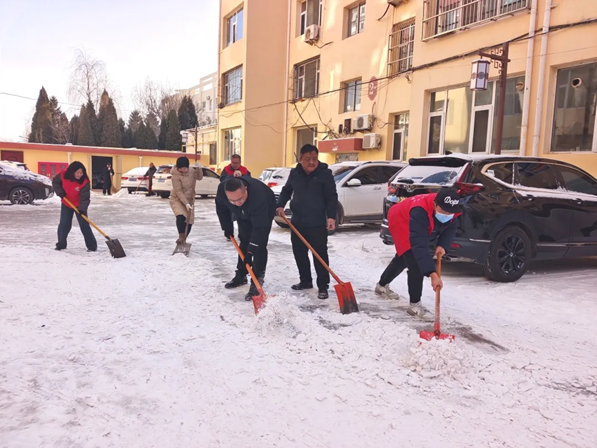 活动中,党员志愿者们身着红马甲,携带铁锹、扫帚等工具,冒着严寒分工协作,重点对小区主干道、单元门口、便民通道等关键区域的积雪和冰层进行集中清扫。大家挥动工具铲雪除冰,默契配合清理路面,用实际行动为居民开辟出一条安全畅通的“暖心路”。经过数小时的奋战,小区内主要通行道路的积雪结冰被彻底清除,有效消除了出行安全隐患。