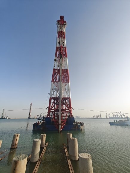 “方桩为专业预制厂生产,强度达标率100%,现场施工仅需吊装、沉桩两道核心工序,效率远超灌注桩。”项目经理张青山对前来检查的业主现场代表介绍道,“原本以为这么复杂的工况,工期肯定要滞后,没想到项目部通过工艺创新,将‘卡脖子’的承台施工变成了进度推进器”在查看沉桩质量后,业主单位现场代表指着海底稳稳扎根的方桩,对项目部的施工方案竖起了大拇指。