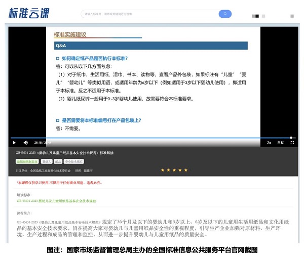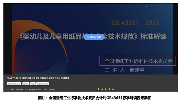 “既然产品合规,为什么不在包装上标注?”这是许多消费者提出质疑的第二个问题。因此,小编便继续查证,发现根据国家标准GB 43631-2023的文本规定,其“标识”要求部分,只明确要求“包装标识应包含表示适用人群或适用年龄(适用时)的中文信息,如‘婴儿’‘婴幼儿’等”。同时,在国家市场监督管理总局主办的全国标准信息公共服务平台官网上,对于GB43631的标准解读文件上也明确说明——GB43631不需要标注在包装上。小编发现,这个文件的解读单位是全国造纸工业标准化技术委员会,这个单位是工信部GB43631 委托执行单位,对标准的解读具有无可争议的权威。