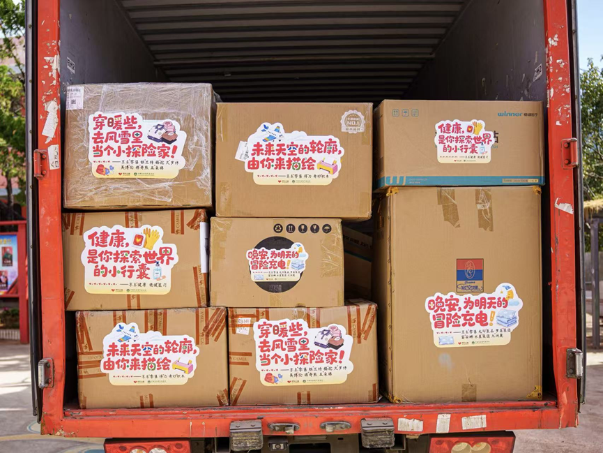 本次捐赠涵盖防寒保暖、学习用品与健康防护三类物资。防寒衣物等物资由京东服饰童装童鞋业务联合多家品牌共同捐赠,包括雅兰特捐赠的1010套冬季校服,骆驼儿童提供的羽绒服及冲锋衣,英博伦、棉奇熊分别捐赠的儿童保暖内衣,久岁伴捐赠的保暖裤,以及五朵棉提供的毛圈袜等。床品方面,无印良品、罗莱集团、富安娜、水星集团、九洲鹿等家纺品牌共同捐赠上百床冬被。