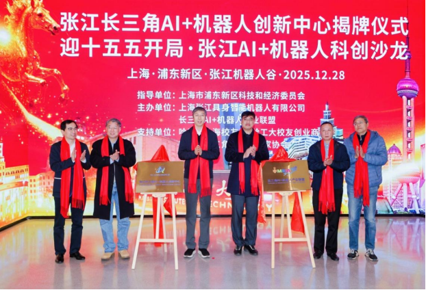 2025年12月28日上午,由“长江流域智能制造与机器人产业联盟”与“长三角机器人产业平台创新联盟”共同推动建立的“长三角AI+机器人产业联盟”正式落地上海市浦东新区张江机器人谷。在浦东新区科经委指导下,该联盟与张江具身智能机器人有限公司联合设立的“张江长三角AI+机器人创新中心”隆重揭牌,仪式由张江具身智能机器人公司副总经理王涛主持。此次活动以“迎‘十五五’开局·张江AI+机器人科创沙龙”为主题,近50名科学家、专家、企业创始人及媒体代表齐聚,共同见证这一产业生态建设的重要里程碑。