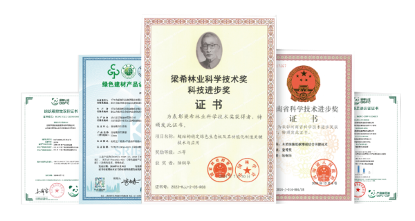细数荣誉,千年舟成果丰硕:主持或参与制定多项国际、国家、行业等各类标准;拥有多项授权专利和发明专利;被认定为浙江省“专精特新”中小企业;揽获“中国专利优秀奖”“中国木业科技进步奖一等奖”“梁希科学技术奖”“人造板标准制修订突出贡献奖”等多项荣誉。