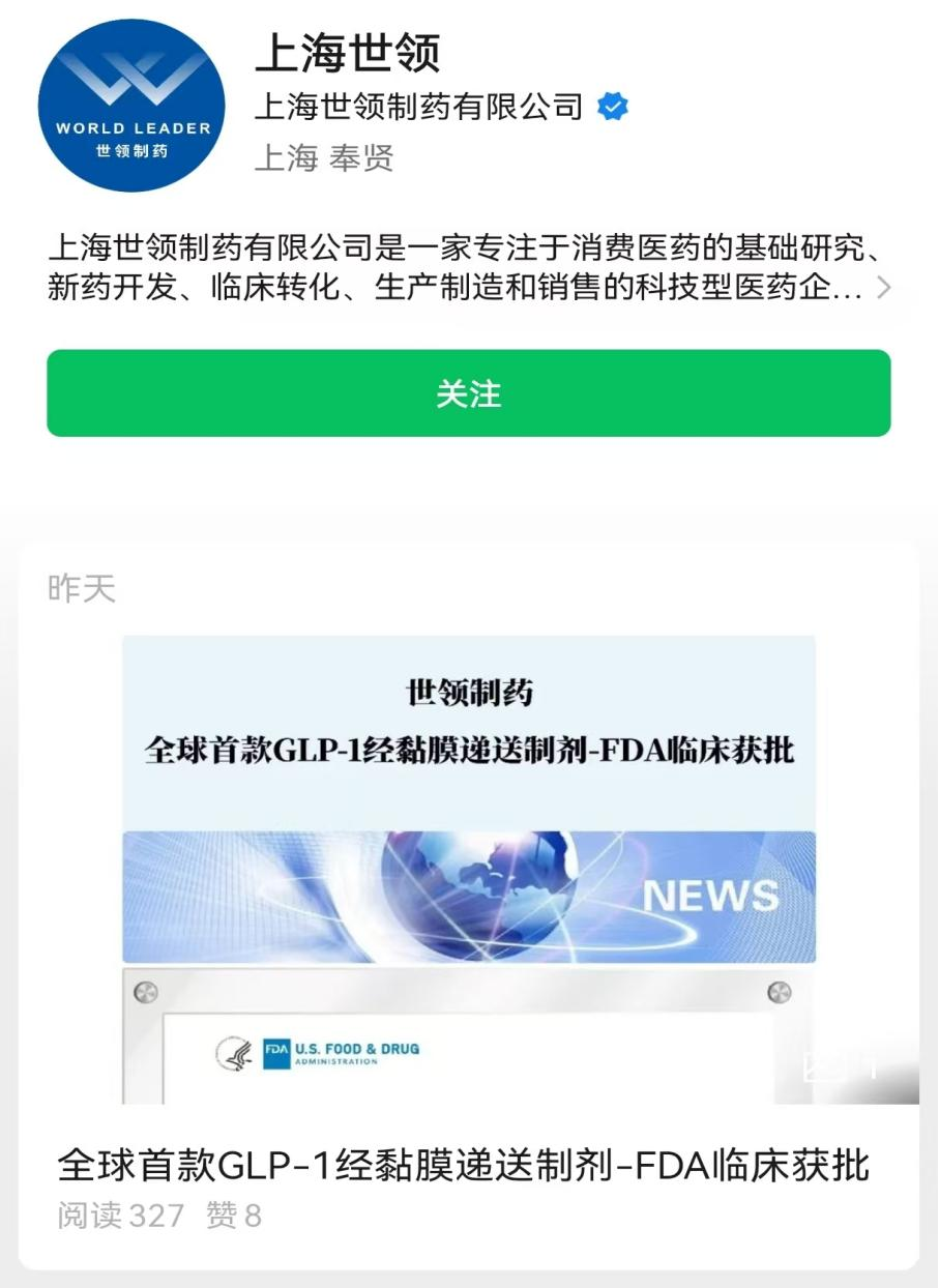 近日,上海世领制药官方公众号披露,其自主研发的司美格鲁肽鼻喷雾剂作为全球首创的GLP-1鼻喷给药新剂型,2025年已获得美国FDA批准进入临床。同时该药品也向国家药品监督管理局药品审评中心(简称CDE)申报临床。