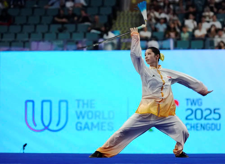 8月8日,成都世运会武术女子太极拳-太极剑决赛在成都高新体育中心举办,中国选手卢卓灵夺冠,为中国代表团摘得成都世运会首金。