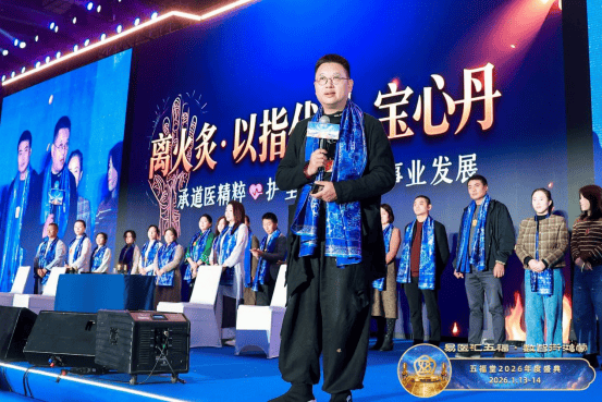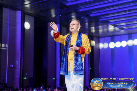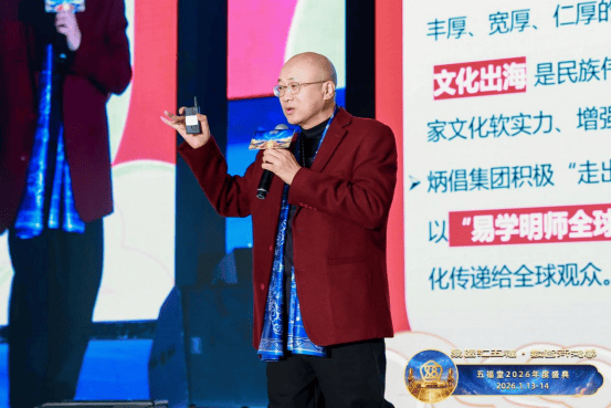 编辑部主编席跃华先生主题分享《坚定文化信心,用国学智慧照亮世界》升华了文化高度,从中国传统文化的现代表达、国际表达、商业表达三个维度,阐述了炳倡集团在传承、弘扬、发展传统文化所作出的卓越贡献,解读炳倡集团2025热门书籍、2026新书亮点。创意小品《穿越之749局改写人生剧本》趣味化呈现了五福堂产品的文化内核。