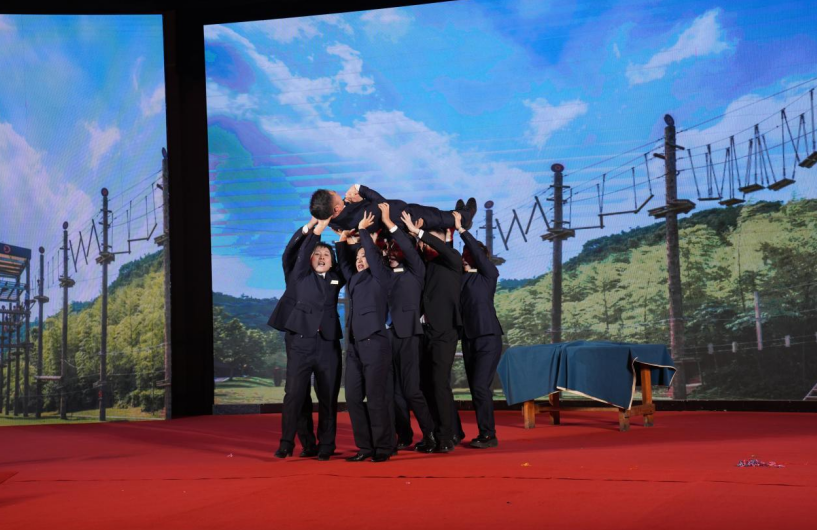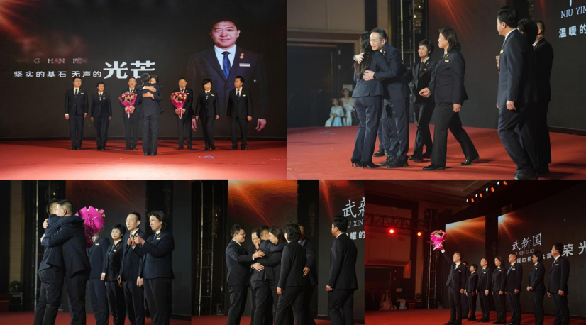 嘉许环节《光语》温情动人,协会会长团队为代监事长兼总务部部长王昌峰、秘书处牛颖理事、第八小组武新国理事送上鲜花与敬意,表彰他们为协会建设与发展作出的突出贡献,也激励着全体会员凝心聚力、共筑未来。最后,协会形象展示《雁阵》震撼亮相,会员们以整齐划一的姿态,诠释了如雁群般团结协作、同向同行的精神内核,为本次庆典画上了圆满且厚重的句号。