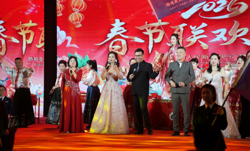 整场庆典演出以五大篇章循序渐进,生动串联起协会的初心坚守、责任担当与奋进姿态。第一至五篇章中,小品《四大才子》以幽默诙谐的演绎展现企业家的风采与智慧,情景剧《死党》真实再现会员间互帮互助、携手成长的深厚情谊,歌曲联唱《中国心+我爱你中国+我们都是追梦人》旋律激昂、情感真挚,引发全场大合唱,将现场氛围推向顶点。