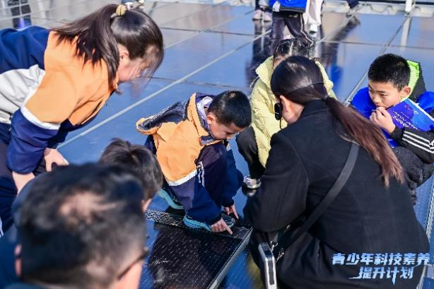 2026年1月17日,由中国下一代教育基金会与中国平安共同主办的青少年科技素养提升计划“科技燃梦”科技型企业开放日活动西安专场带领来自陕北、陕南、关中三地的城乡师生,走进西安科技馆、隆基绿能科技股份有限公司。通过沉浸式观摩、硬核实验探究、特色互动问答等多重体验,体验科技的趣味,揭开光伏技术的神秘面纱,在“看见科技”“动手验证”“主动发问”的进阶中,深化科技带来绿色可持续发展的认知,为“双碳”目标下的青少年科技素养培育写下生动注脚。