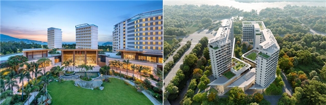 泰康之家·鹏园(左)实景图;泰康之家·禅园(右)效果图
