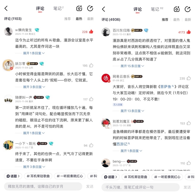 网易云音乐在2025年12月举办“百万奖金AI音乐创作大赛”,鼓励优质 AI 歌曲的创作,「漫游会议室」作为评委之一参与评审。AI时代,「漫游会议室」认为不应把AI当做竞争对手,而应当做工具,AI也不会让音乐人失业。即便他在运气爆棚的时候用AI能半天写出一首让自己满意的歌,但他也说,缺乏专业的音乐知识也是他的瓶颈。并且很多作品需要人和AI一起反复打磨,因而AI时代好作品的关键还是“人”。