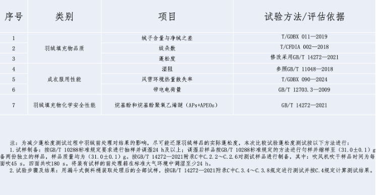 图片来源:羽绒服装比较试验报告【测试指标与方法】
