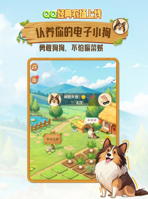 据悉,本次回归的QQ经典农场,由曾经研发老版农场的腾讯魔方工作室制作。玩法层面,完整保留核心精髓,原汁原味还原“播种-浇水-收获-偷菜”的基础体验,“扔虫子”、“放杂草”等趣味互动悉数回归,复刻当年蹲点守菜的快乐与紧张感。同时,新增多重创新玩法:上线百种特色作物,新增作物变异玩法,让种植体验充满未知惊喜;搭配认领的农场萌犬,能守护田园、防范偷菜,解锁更多治愈乐趣;同时升级为更精致的画风,在还原记忆中田园风貌的同时,以更细腻的画面质感,呈现不一样的田园风光。