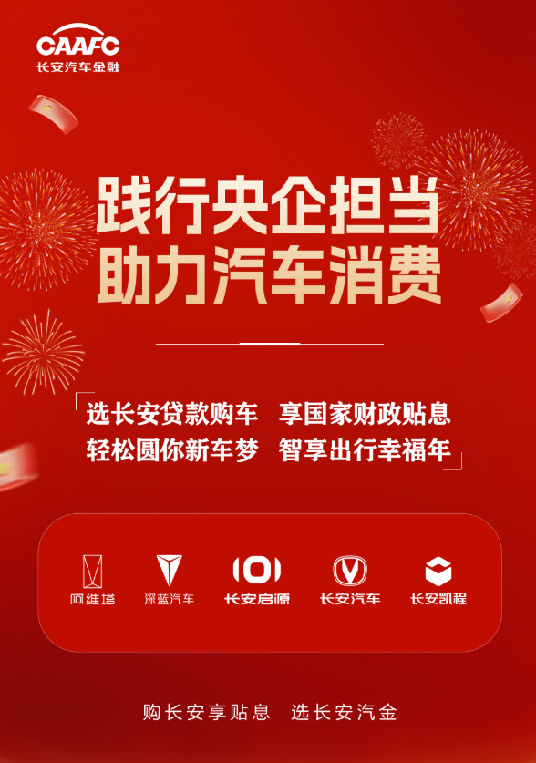 据了解,2026年1月1日至12月31日,符合条件的个人汽车消费贷款客户,均可通过长安汽车金融享受国家财政利息补贴,以金融服务助力民生消费。此外,长安汽车金融还同步推出长期限金融产品,为阿维塔、深蓝汽车、长安启源等多款车型提供灵活融资方案,全方位满足消费者的多样化需求。
