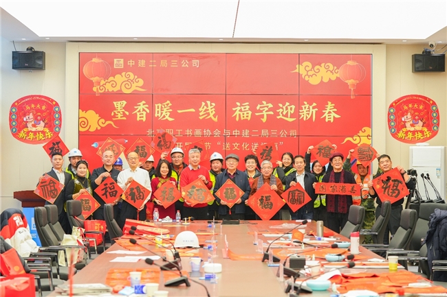 笔墨传情,福至一线。此次活动不仅营造了喜庆祥和的节日氛围,丰富了职工的精神文化生活,更增强了职工的归属感与凝聚力,为助力重点工程建设、促进企业和谐发展注入了浓厚的文化动能。中建二局三公司将以此为契机,持续推动职工文化建设,引导广大职工将文化的滋养转化为奋斗的动力,大力弘扬劳模工匠精神,为企业与首都高质量发展贡献智慧和力量。(刘俊)