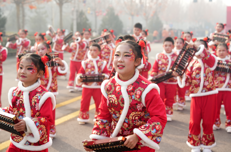 “初心筑梦 农商远航”舞蹈以百人方阵演绎磅礴气势。舞者手中的渐变彩扇随旋律起伏,时而如星火汇聚,时而如红浪翻涌,将祁县人民的红火日子与农商银行的蓬勃朝气演绎得淋漓尽致;小朋友们手持精致算盘灵动登场,随着节拍轻挥珠算、踏歌起舞,清脆的算珠碰撞声与欢快的旋律交织共鸣,既将金融元素演绎得童趣盎然,更以纯真姿态,诠释了金融为民的初心。远航红帆,承载着金融报国、金融强国的赤诚初心;奔腾骐骥,踏出新征程服务发展的坚定步伐;曼妙舞姿,舒展新时代金融为民的动人风采。