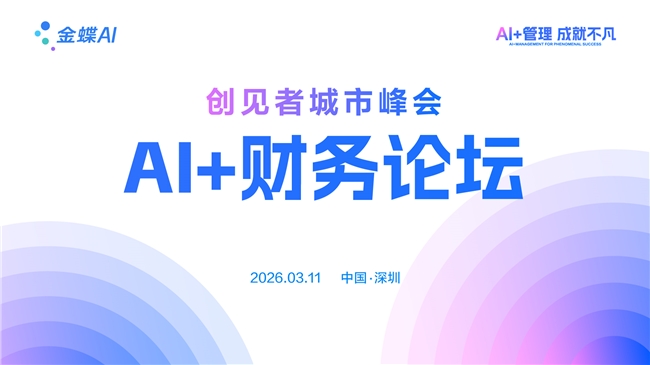 3 月 11 日,金蝶将在深圳举办创见者城市峰会 ——AI+财务论坛,聚焦 AI 浪潮下财务数智化转型新思维、新技术、新实践,助力企业重构财务新范式、实现价值跃迁,迈向世界一流财务管理体系。
