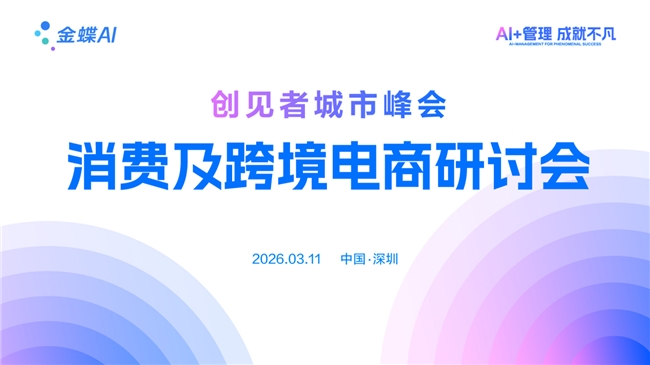 2026年,AI技术加速渗透产业核心,消费行业面临增长动能转换、运营效率提升、合规经营等多重挑战,数字化转型成为企业破局的必然选择。3月11日,金蝶“创见者城市峰会——消费及跨境电商研讨会”在深圳启幕,以AI赋能为核心,为消费和跨境电商企业搭建交流合作、破解困局的高端平台。