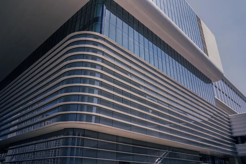 多重幕墙系统协同共生,使建筑在不同时段的光影下,都能呈现出层峦叠翠的立体美感,与钱塘江景、奥体景观轴遥相呼应。