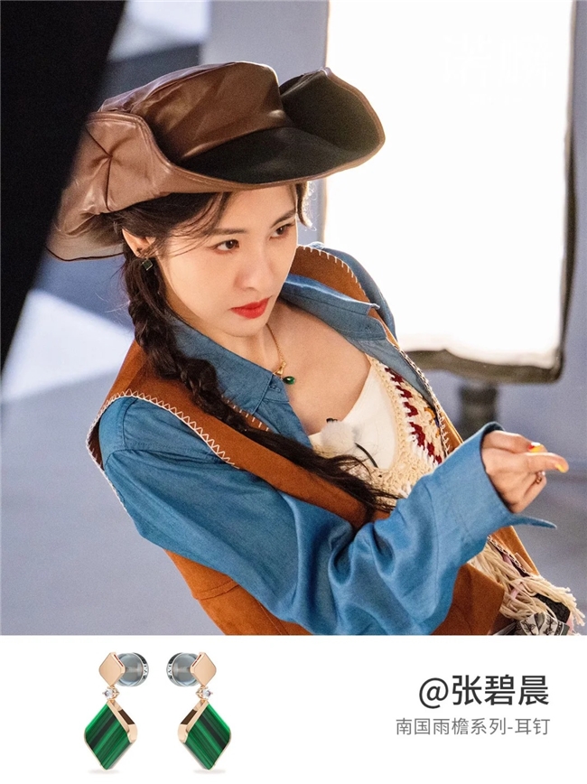 张碧晨同款的南国雨檐系列孔雀石款耳饰,是温婉女生的必入单品,将江南烟雨的清雅与女生的灵动气质完美融合。灵感源自江南建筑的瓦片,线条简约流畅,还原江南的温婉意境,搭配天然孔雀石的浓郁绿意,既有东方韵味,又有现代美感,灵动又雅致,拍照出片率超高,更能作为闺蜜款,彰显专属默契。