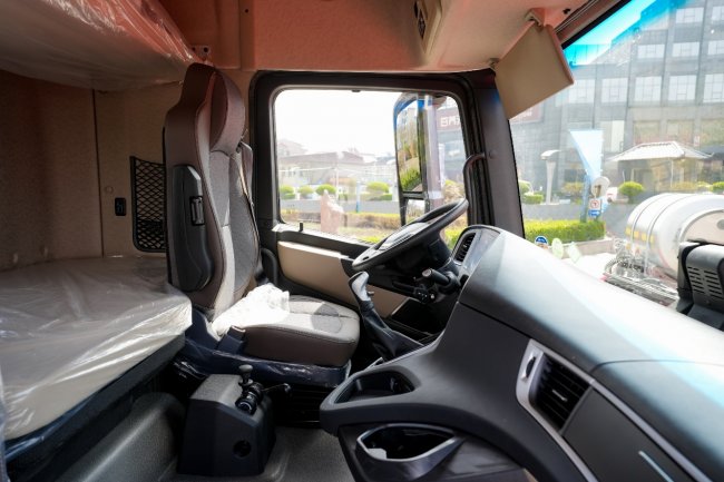 驾驶室内采用150mm低鼓包设计,中部站立高度达1850mm,让驾驶员在车内活动自如。880mm超宽卧铺,为长途奔波的驾驶员提供舒适的休息空间。环绕式仪表台让各类按键触手可及,换挡杆集成优化至仪表台,彻底释放主副驾之间的通道空间。7寸液晶仪表搭配可选装的10寸多媒体大屏(集成四方位影像),行车信息一目了然。标配气囊座椅可选通风加热及三级气动腰托功能,无论酷暑寒冬都能提供舒适的乘坐体验。