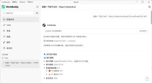 系统自动完成地址访问、安全审计与技能部署,全程无需人工干预。