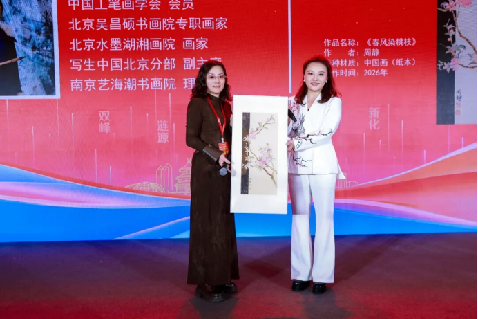 作者北京吴昌硕书画院专职画家周静与获奖者合影留念