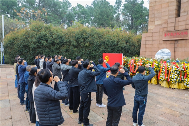 “我志愿加入中国共产党,拥护党的纲领,遵守党的章程……”在鲜红的党旗前,全体党员举起右拳,重温入党誓词。铿锵有力的誓言在陵园上空回荡,彰显着新时代共产党员继承先烈遗志、践行初心使命的坚定信念。