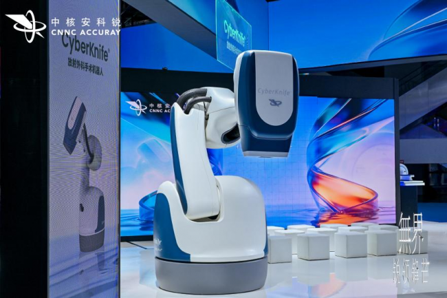 CyberKnife S7 X射线立体定向放射外科治疗系统同样搭载Synchrony实时追踪技术,其极度灵活的机械臂平台,配备机器人多叶光栅(MLC)、 VOLO 极速优化引擎和“金标准”蒙特卡罗 (Monte Carlo) 算法,能够对运动肿瘤进行亚毫米级的追踪,专攻全身各部位复杂病灶的立体定向放射外科精准治疗。本次展出的硬件“双子星”都是临床中无坚不摧的“硬核利器”,展现了中核安科锐的放疗硬核实力。
