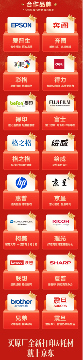 在此背景下,“京东品质打印联盟”的成立,既是对消费市场乱象的有力回应,更是对消费者的郑重承诺,所有联盟品牌在京东销售的打印机及耗材,均严格坚持“原厂全新、正品保障”原则,坚决杜绝翻新机、拼装机流入销售体系,从源头筑牢品质防线。未来,消费者只需认准京东,即可轻松选购经过严格筛选的优质打印机和耗材产品,无需再为真伪与品质担忧。